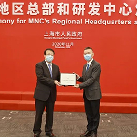 2020年11月19日,上海市人民政府舉辦了新一批跨國公司地區總部的頒證儀式。喬治費...