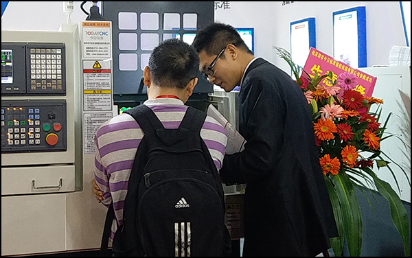 在開展期間,眾多國內外高精尖產品同臺競爭,全面展示智能制造新風貌,也呼應著本次“東莞國際金屬加工展“工業強基與智能制造”的主題。今日標準作為一家專注于生產數控走心機的生產廠家,用“匠心”表達出了企業對于數控走心機的專注。只見今日標準每臺機床前都人氣爆棚,參展觀眾絡繹不絕,贊譽掌聲接連不斷。今日標準的工作人員耐心接待每一位到訪觀眾,細心介紹產品性能;操作人員熟練展示產品的加工魅力,詳細解說每一個加工步驟。