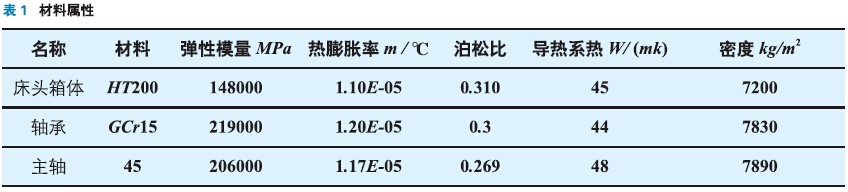 在ANSYS Workbench 12中重新添加床頭箱,軸承和主軸三種材料,其材料屬性見(jiàn)表1。