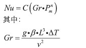 式中,C、n為常數(shù)由相關(guān)參考文獻(xiàn)查出;Gr為格拉曉夫準(zhǔn)數(shù);g為重力加速度;β為體膨脹系數(shù):L為形狀特征尺寸;v為運(yùn)動(dòng)粘度;ΔT為流體與壁面溫差。